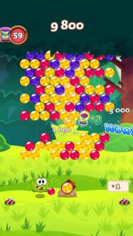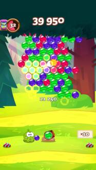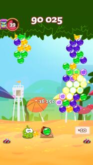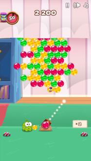 Om Nom se met au tir aux bulles! Rejoignez la star de Cut the Rope dans ce jeu de tir aux bulles très fun et simple à prendre en main. Utilisez votre canon pour tirer des bulles colorées vers le haut de l'écran et tâchez de former des groupes de 3 bulles identiques ou plus pour les faire éclater. Déclenchez des réactions en chaîne, utilisez des power-ups comme la bombe ou le sablier, et voyagez à travers de nombreux environnements colorés. Prêt à éclater des bulles avec Om Nom?