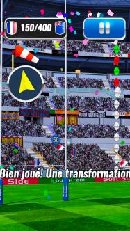 Fans d'ovalie, chaussez vos crampons et découvrez ce tout nouveau jeu de rugby en 3D aux graphismes ultra-réalistes! Après avoir sélectionné votre équipe préférée, entraînez-vous au lancer de ballon, en contrôlant l'angle et la puissance de vos tirs, sans oublier de prendre en compte la direction du vent. Puis marquez un maximum d'essais en vous amusant à remonter le terrain, sans vous faire plaquer par vos adversaires. Serez-vous suffisamment habile pour remporter le tournoi et décrocher la coupe?