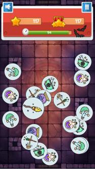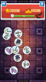 Testez votre sens de l'observation avec ce jeu très simple à jouer dans lequel vous devez trouver des paires de symboles identiques parmi une pile de jetons sur le thème de la sorcellerie: potions, grimoires, baguettes magiques... Touchez simplement les jetons identiques pour les faire disparaître et essayez de vider chaque niveau avant la fin du compte à rebours!