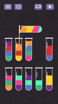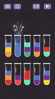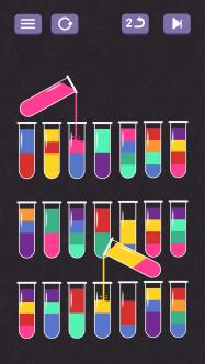 Mettez votre logique à l'épreuve avec ce jeu de réflexion redoutable dont l'objectif consiste à trier des liquides de différentes couleurs! Pour réussir, transvasez les liquides d'une fiole à l'autre, en sachant que vous ne pourrez les verser que sur un liquide de couleur identique ou dans un récipient vide. Planifiez vos mouvements pour ne pas vous retrouver bloqué ou utilisez les boosters disponibles (comme l'annulation du dernier coup, le passage au niveau suivant ou l'achat d'un nouveau flacon). Parviendrez-vous à séparer les différentes couleurs?