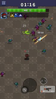 Les zombies ont envahi le monde et il vous incombe de les éliminer dans ce jeu de survie! Pour y arriver, sélectionnez un combattant et une arme parmi les nombreuses options disponibles. Arpentez ensuite la zone de combat en éliminant les hordes d'ennemis et les boss successifs. Recueillez les pièces qu'ils largueront afin de pouvoir acquérir de nouvelles armes et des capacités de plus en plus puissantes. Puis améliorez les attributs de votre personnage entre 2 sessions. Combien de temps pensez-vous pouvoir survivre?