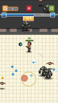 Affrontez une bande de robots devenus hostiles dans ce jeu de survie accessible à tous les types de joueurs! Dans la peau d'un jeune ingénieur, déplacez-vous à travers la ville en liquidant progressivement les robots qui déambuleront autour de vous. Ramassez les orbes bleus afin de gagner de l'expérience, ce qui vous permettra d'acquérir de nouvelles armes et armures. Récupérez de la santé grâce aux trousses de soins laissées par certains ennemis. Puis améliorez vos compétences à l'aide de l'argent trouvé. Combien de temps serez-vous capable de tenir?