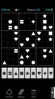 Jouez au sudoku sur votre mobile grâce à ce jeu entièrement personnalisable! Que vous soyez novice ou expert, commencez par choisir un mode de jeu (rapide, classique ou défi quotidien) ainsi qu'un type de partie (selon que vous souhaitiez jouer avec des numéros ou des formes). Sélectionnez ensuite le niveau de difficulté qui vous convient. Puis placez tous les numéros ou les symboles dans la grille, en veillant à ce que chacun d'eux n'apparaisse qu'une seule fois par ligne et par colonne. Un jeu addictif qui plaira aux fans de logique et aux passionnés de casse-tête!