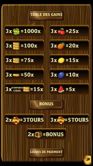 Tentez votre chance sur une machine à sous digne de Las Vegas dans une ambiance fruitée! Retrouvez toutes les fonctionnalités d'une machine à sous classique avec le Wild, les tours gratuits et les parties bonus. Il vous suffit de faire tourner les rouleaux et d'aligner les fruits pour gagner gros, et pourquoi pas toucher le jackpot. Bonne chance!